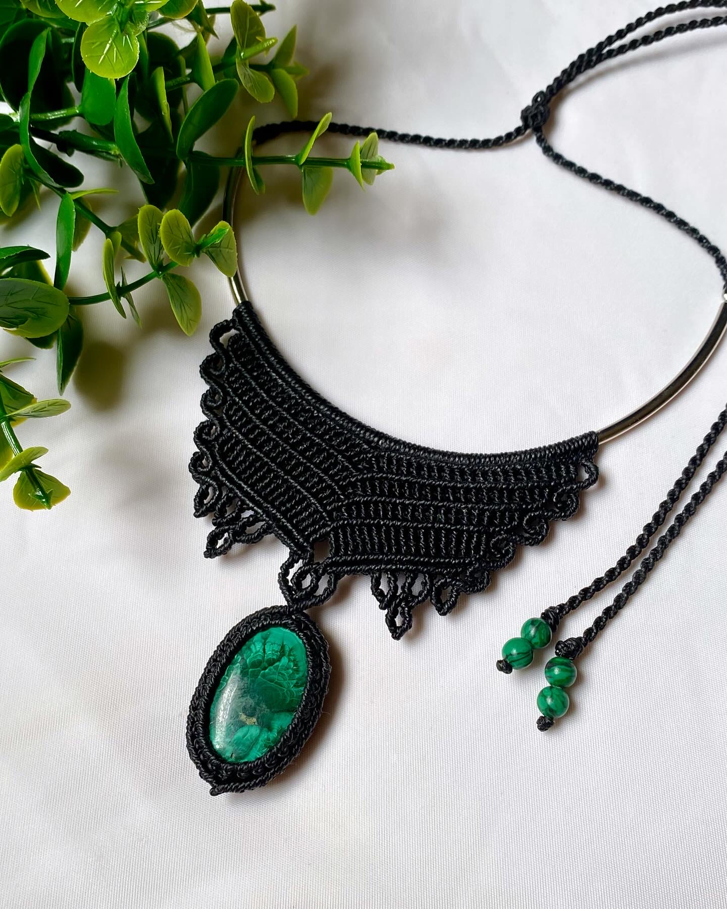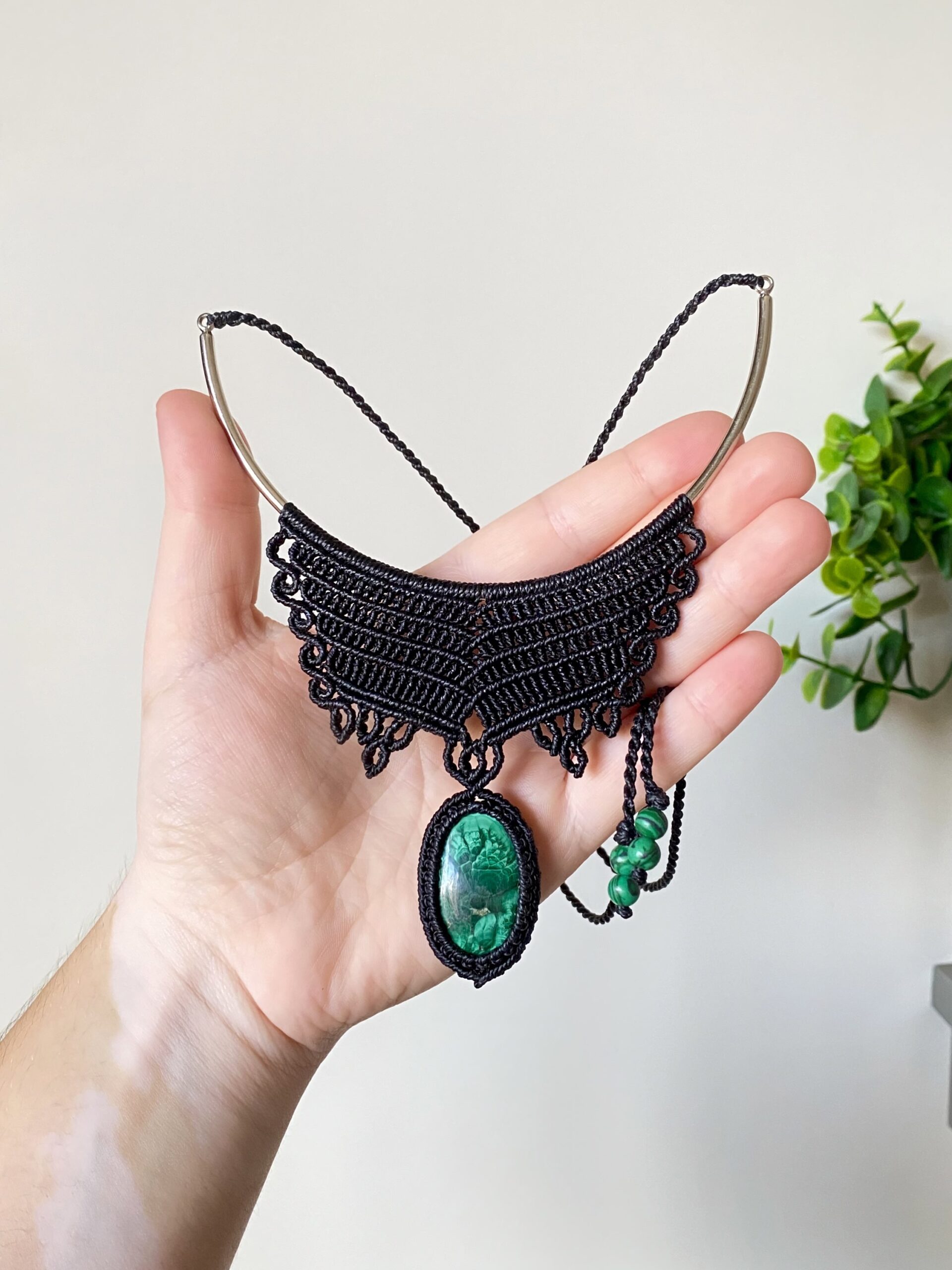 O grande charme dessa peça está na pedra malaquita, conhecida por seus tons verdes intensos e seus desenhos naturais únicos. Um colar perfeito para quem ama acessórios com presença, personalidade e conexão com a natureza.