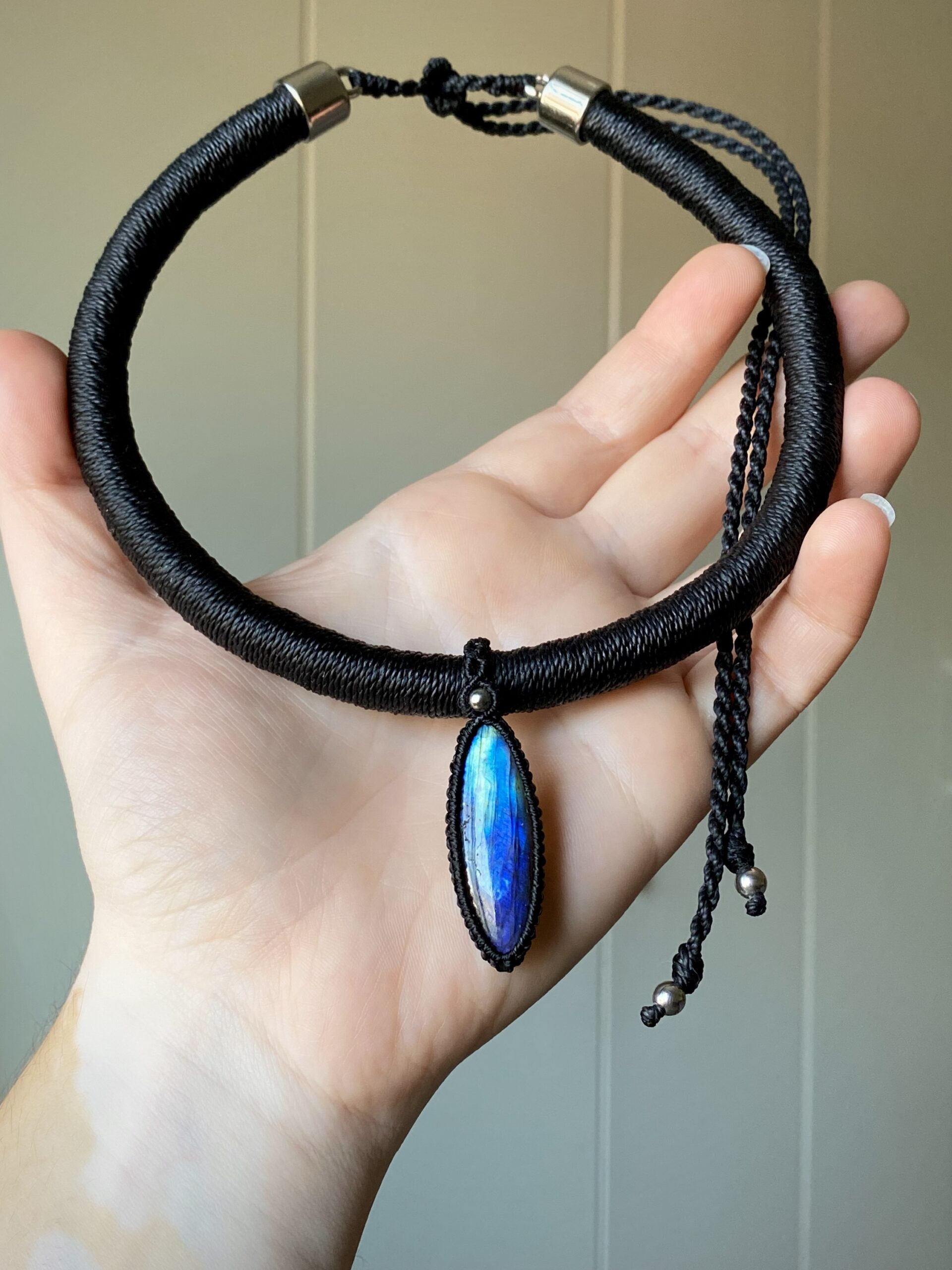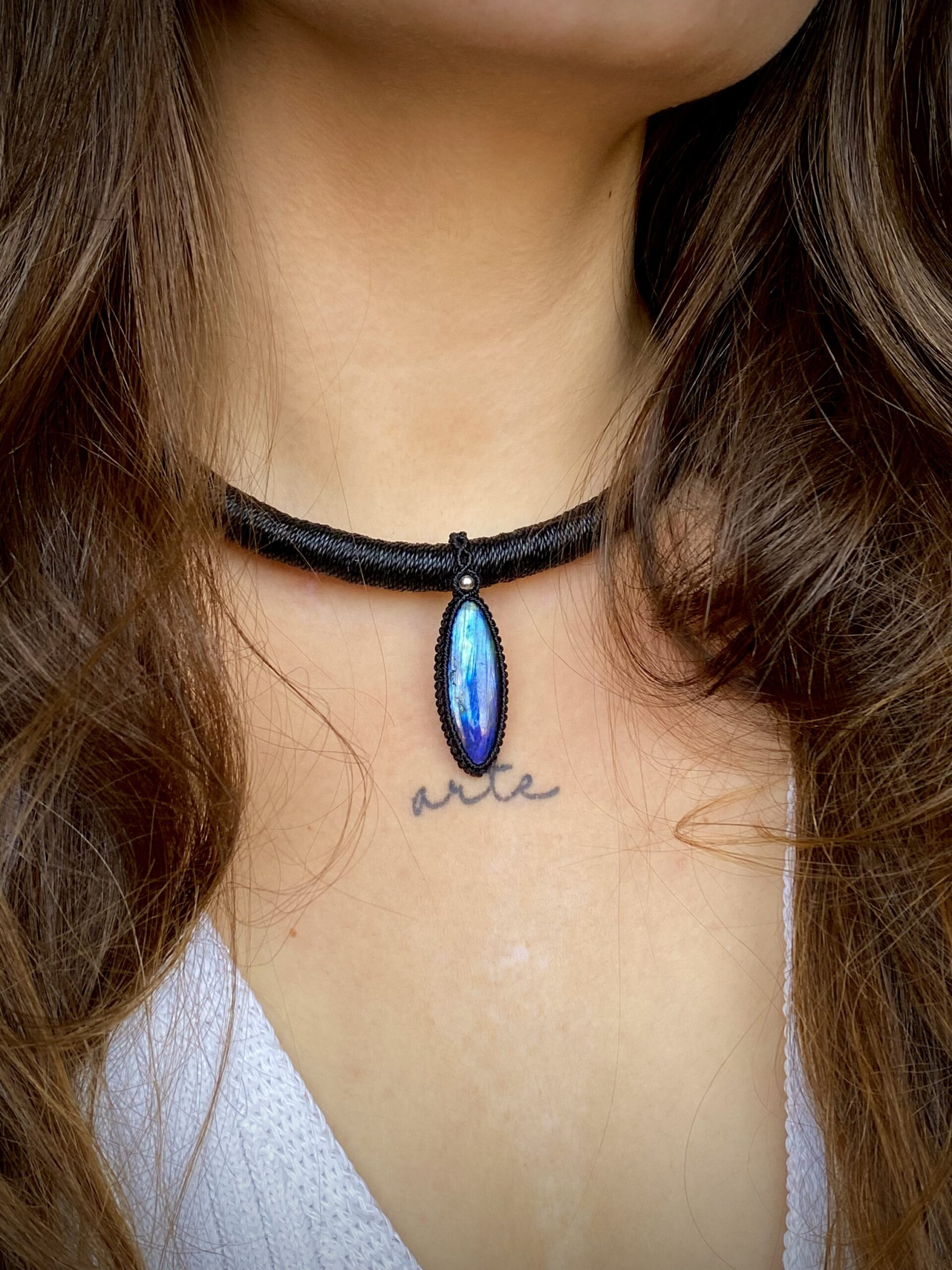 Colar Tubular com Pedra Labradorita Azul