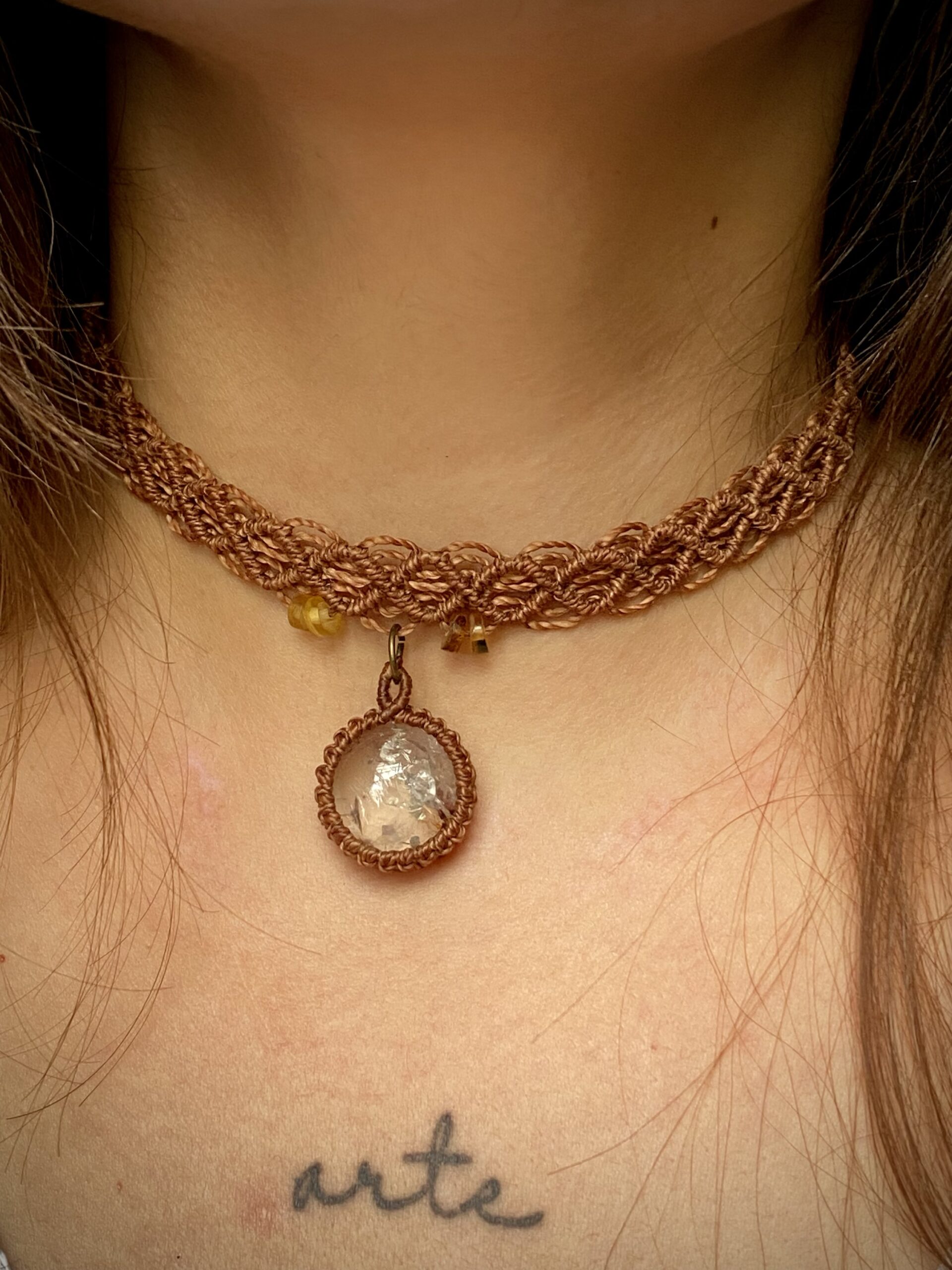 •Pedra: Quartzo cristal com inclusão de Marcassita