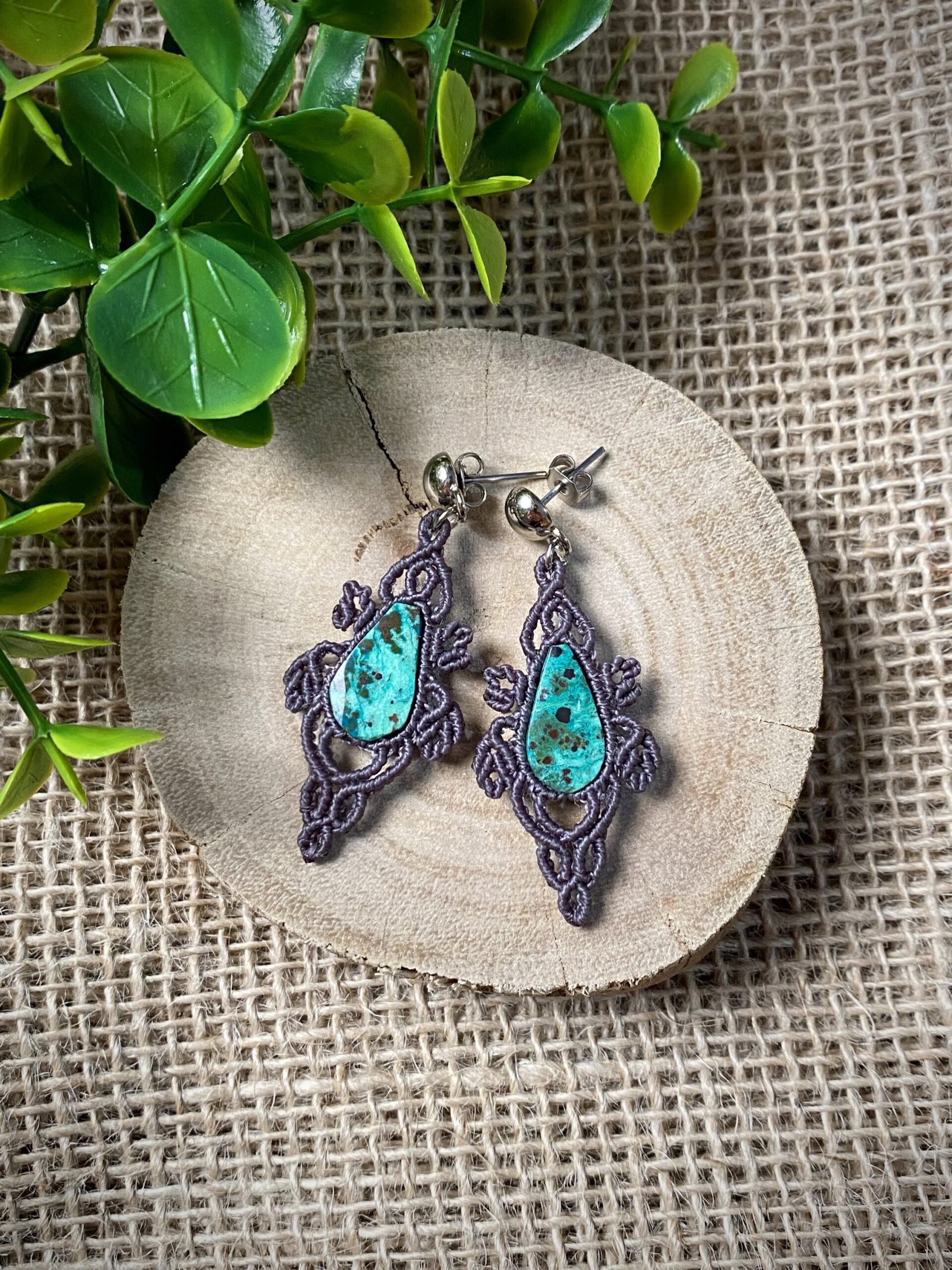 ✨ Par de Brincos com Pedra Crisocola Peruana. Leves, artesanais e cheios de beleza natural ✨