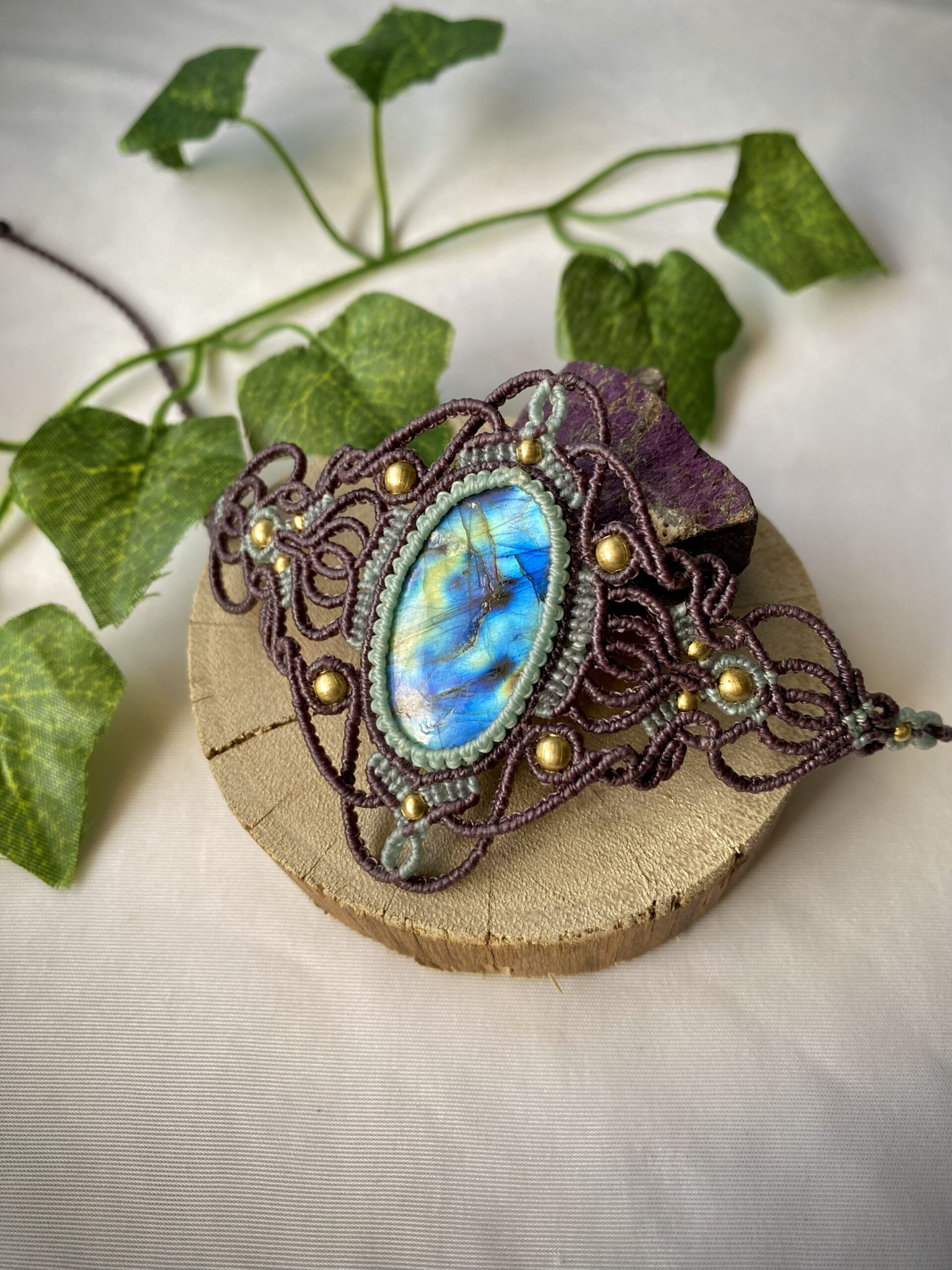 •Pulseira em 2 cores (roxo/lavanda e verde água)