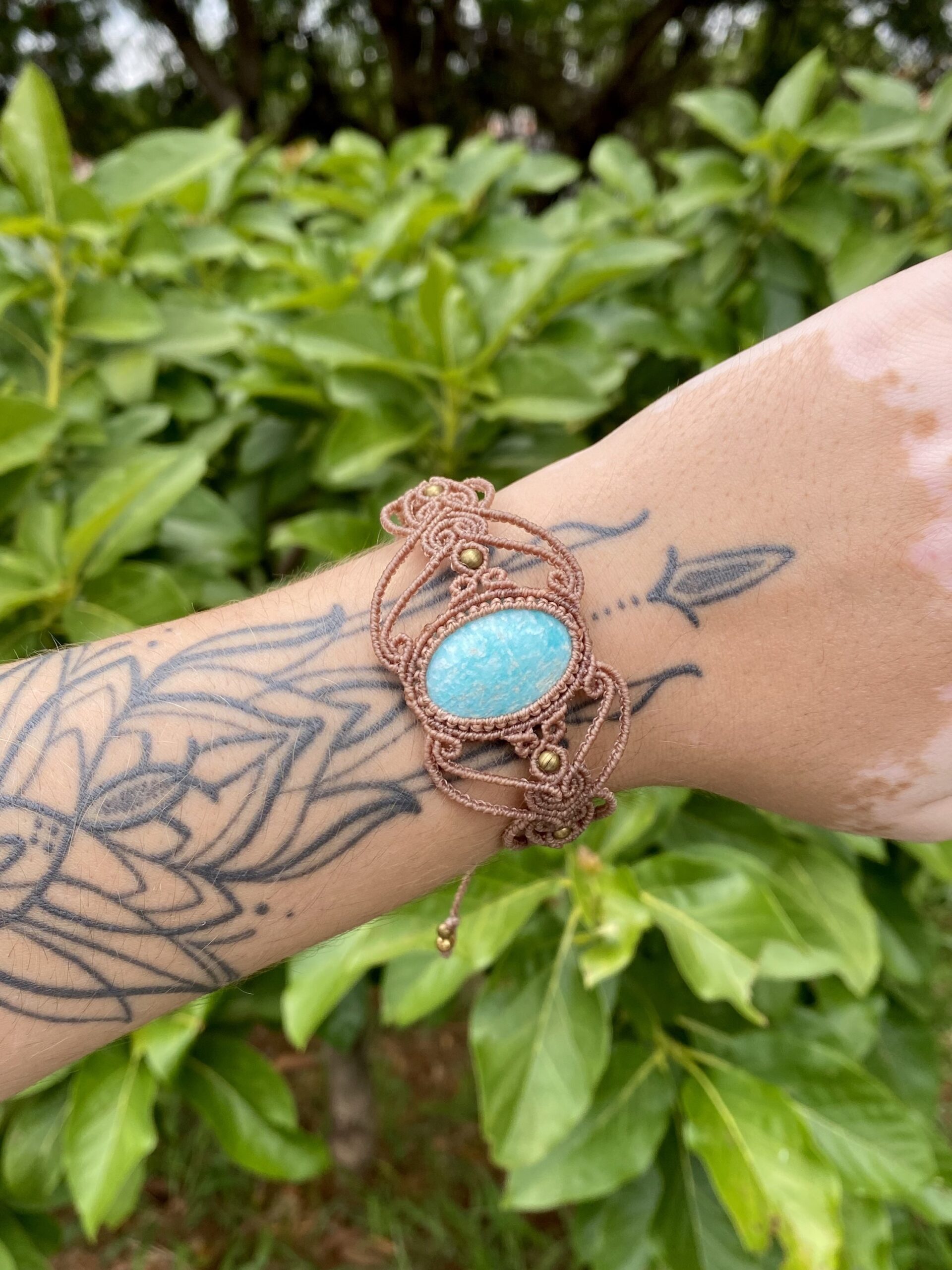 O charme dessa peça está na beleza suave da Amazonita, uma pedra natural que traz delicadeza, frescor e um toque especial ao visual. Perfeita para quem ama acessórios sutis, mas cheios de personalidade.